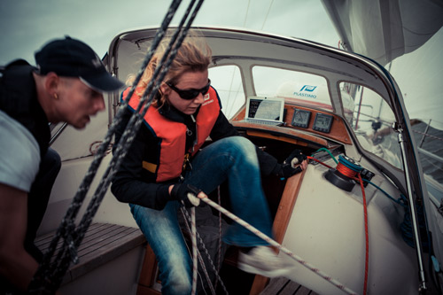 Dat we de strijd aangaan merkt ook de Primo Volente, een Beneteau First 375. We komen de boot meer dan drie keer tegen gedurende de wedstrijd. We varen zo hoog mogelijk zodat zij niet kunnen passeren. Dat lukt net niet. Ondertussen maak ik de spinnaker klaar. Samen met Niels, omdat ik nog niet zeker ben van mijn kunnen. “We hijsen hem aan stuurbord.” Fok… de zak hangt aan bak. Snel wisselen en dan toch… moet hij wel aan bakboord. De Boekanier klapt op de golven. Water slaat over me heen, de zak gaat open en het blauwe zeil glijdt met rap tempo het water in. Zo snel mogelijk halen we hem naar binnen. Dit kost ons minimaal één plek in de einduitslag, bedenk ik me als ik op de hoge kant zit en mijn haar uitwring.
